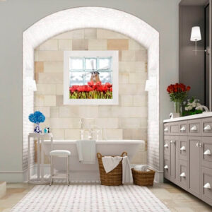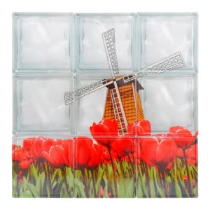 Vitral vidrio block Rosas Index Internacional de alta transmisión de luz natural a cualquier espacio interior o exterior como ventanas, muros, losa, piso, etc. Cada vitral cuenta con 9 piezas de 19 x 19 x 8 cm cada una.