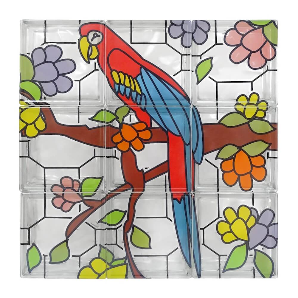 VIDRIO BLOCK VITRAL GUACAMAYA 57 x 57 x 10 CM
